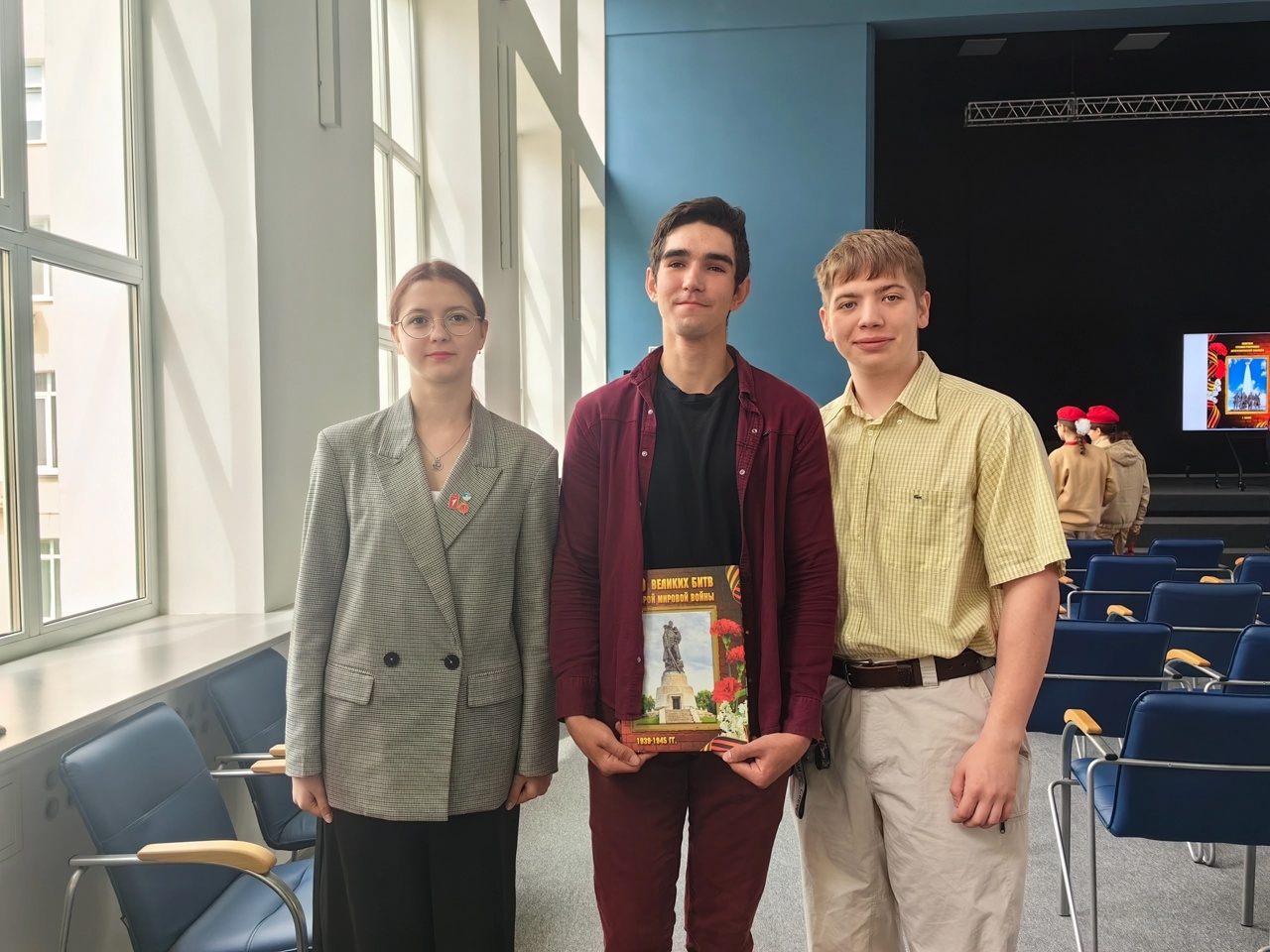 На встрече были представители Совета музея колледжа и воспитатели общежития. Максим Антропов получил в подарок от автора книгу о главных битвах Великой Отечественной войны за проявленные хорошие знания военной истории России.