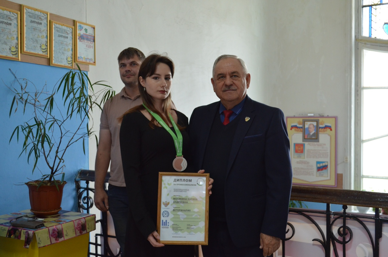 5 сентября, на церемонии выноса Государственного флага Российской Федерации, состоялось вручение медальона за профессионализм по компетенции "Ветеринария" итогового (межрегионального) этапа Чемпионата по профессиональному мастерству "Профессионалы" Карине Мосякиной.