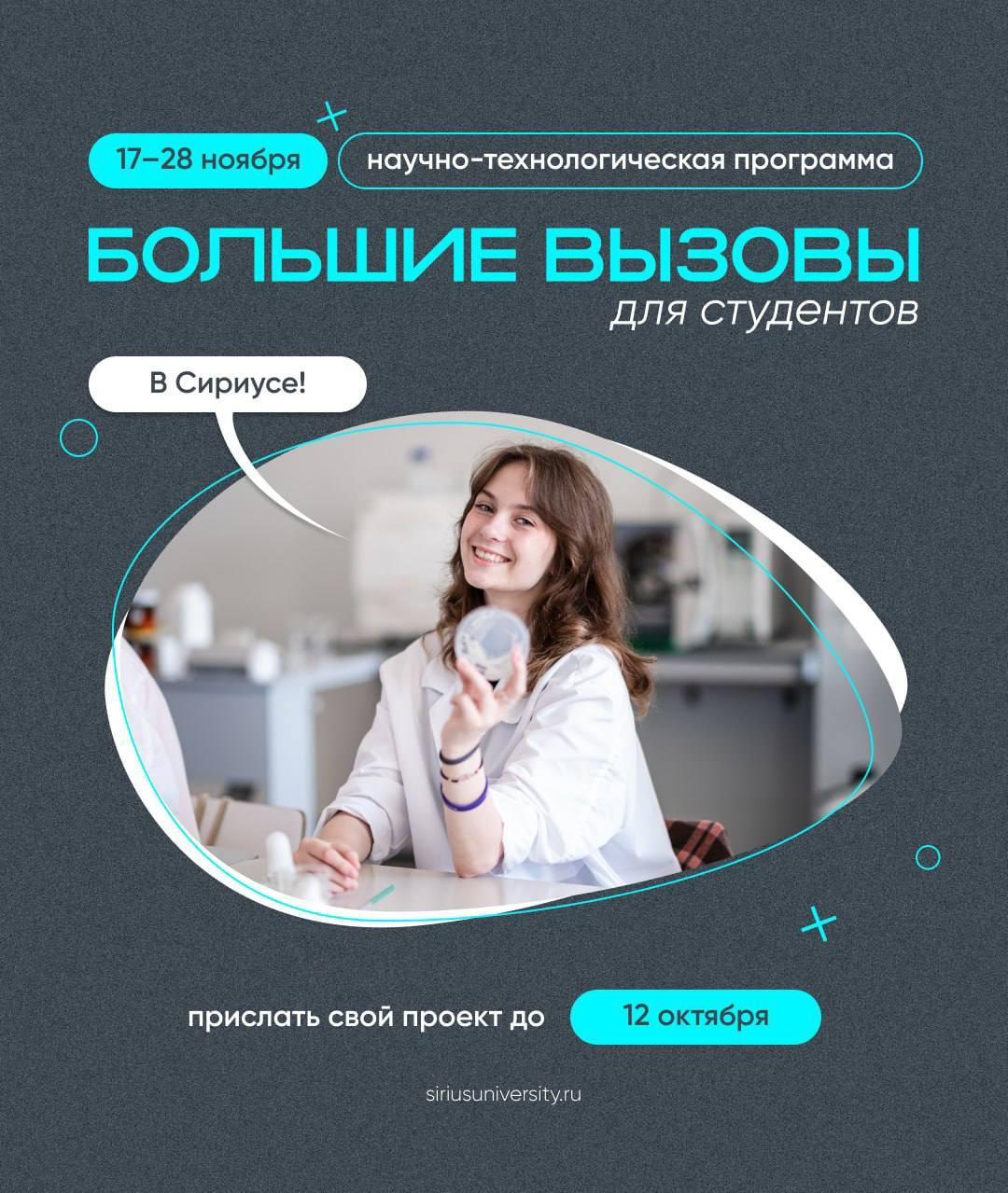 Программа пройдёт с 17 по 28 ноября. Принять участие в ней смогут студенты бакалавриата, специалитета и среднего профессионального образования, которые хотят развиваться в науке и технологиях.