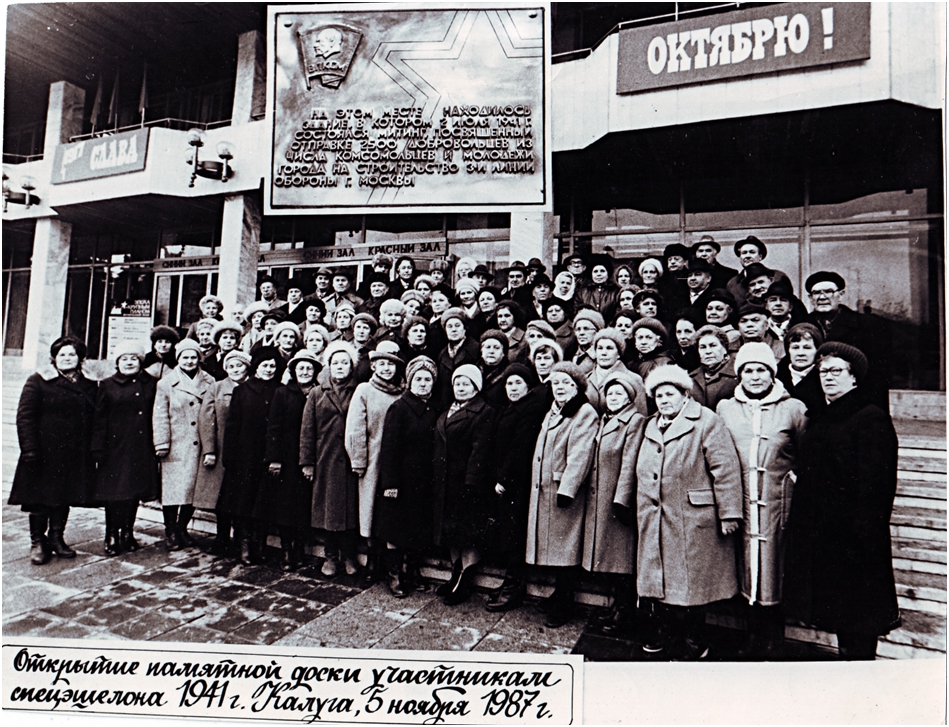 5 ноября 1987 года на здании кинотеатра «Центральный» была установлена мемориальная доска в память о калужском комсомольско-молодёжном спецэшелоне (в настоящее время доска обновлена).