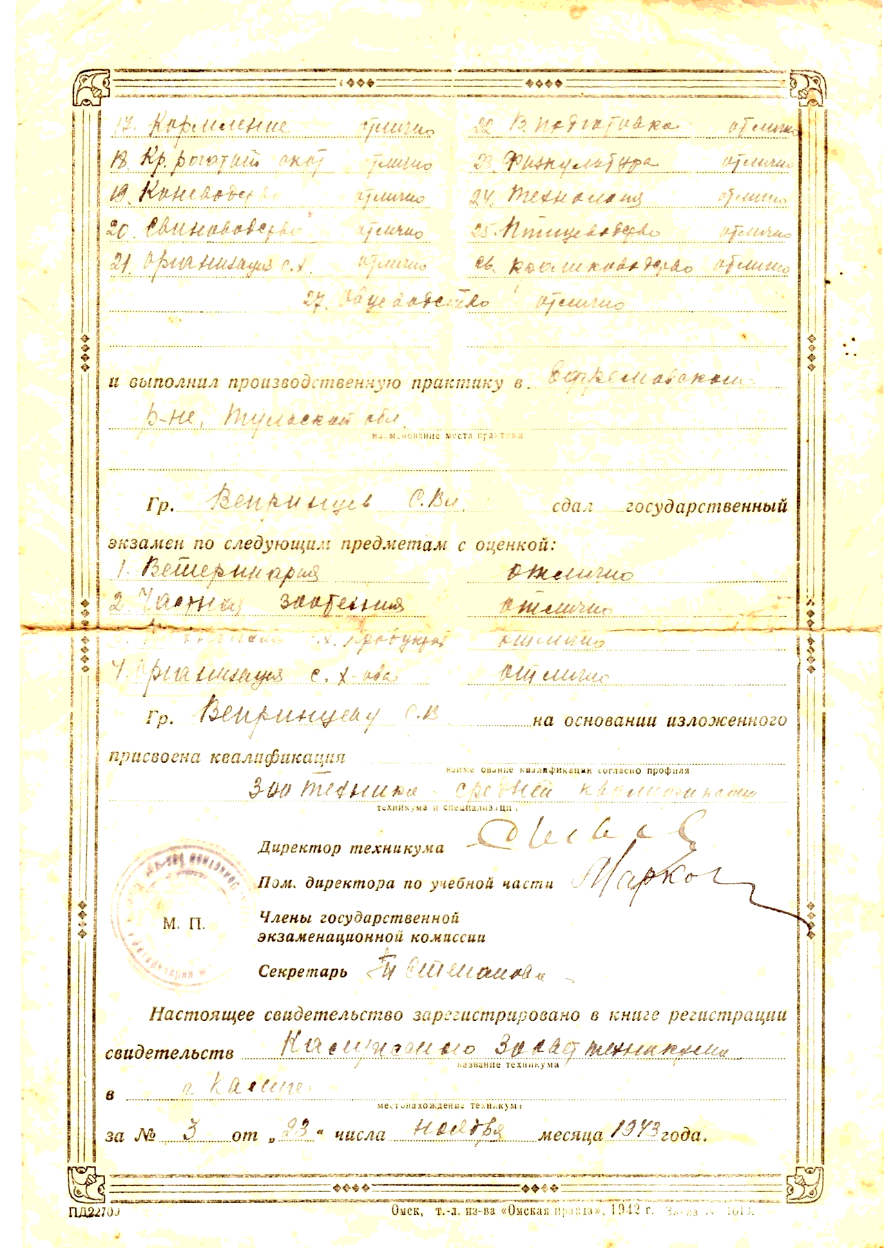 А экзамены сдавали по ветеринарии, частной зоотехнии, технологии сельскохозяйственной продукции, организации сельского хозяйства, получая квалификацию зоотехника средней квалификации.
