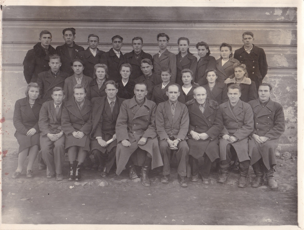 Техникум был почти разрушен. Вместо стекол фанерные доски. Чернилами не писали, потому что они тут же застывали на морозе.